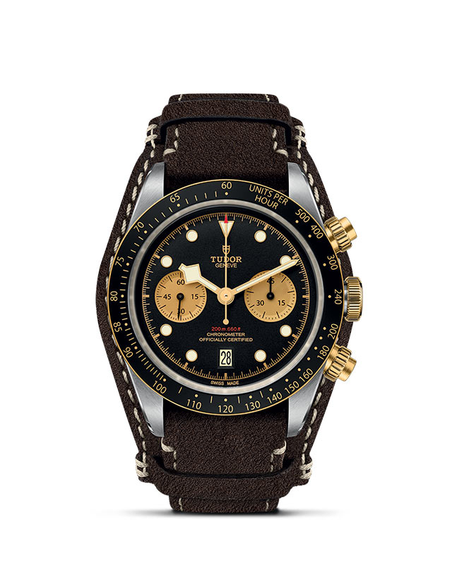 L’orologio ibrido Black Bay Chrono unisce alla tradizione dei modelli subacquei Black Bay la funzione cronografo tipica del mondo delle corse. Le caratteristiche della collezione Black Bay sono preservate nella cassa in acciaio dotata di pulsanti ispirati alla prima generazione di cronografi TUDOR. Una lunetta fissa con scala tachimetrica incisa completa il quadrante di questo cronografo dallo stile sportivo.