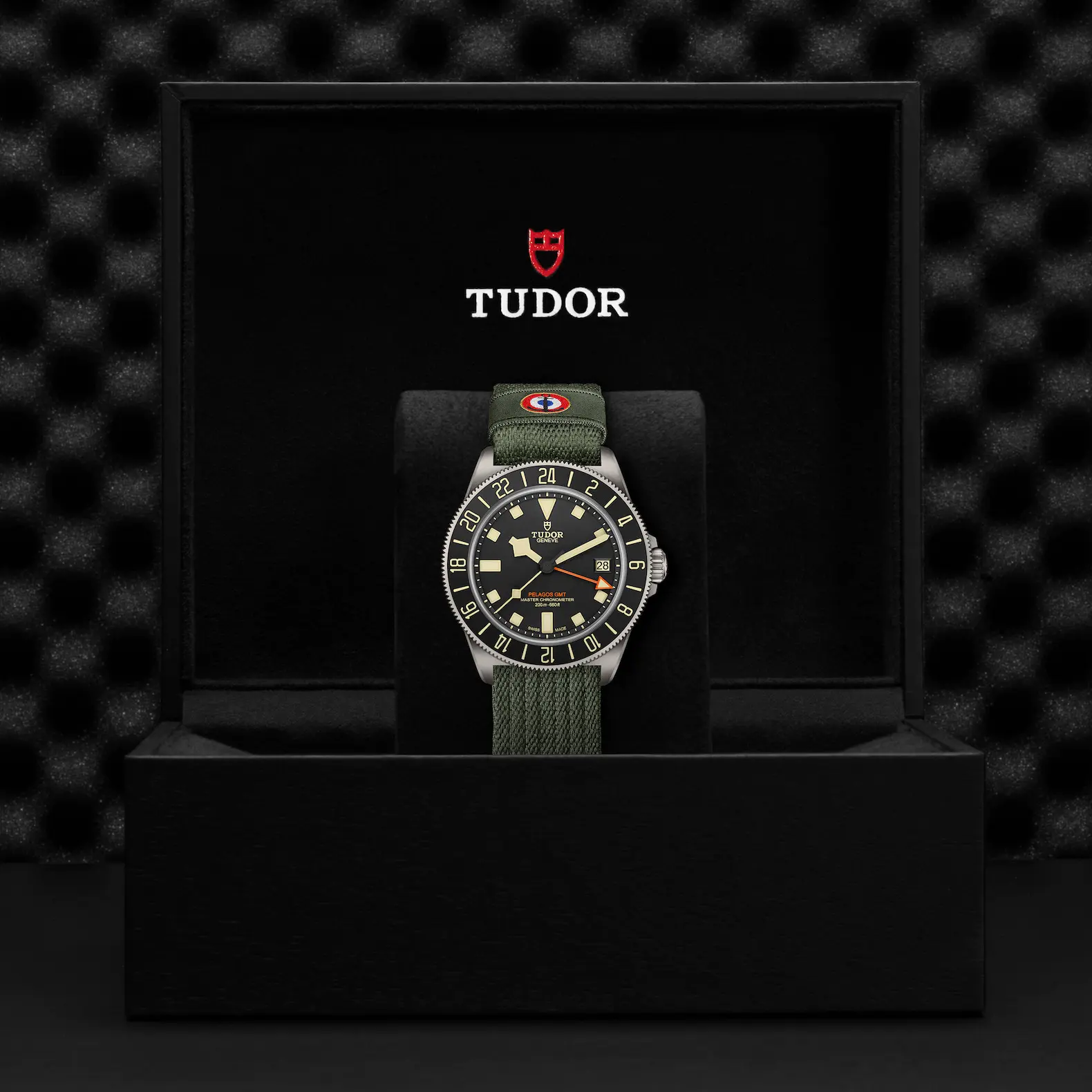 Metti nel carrello Richiedi informazioniIl modello Pelagos FXD, dove la contrazione dell’inglese “fixed” allude alle robuste barrette fisse per l’attacco del cinturino, è stato sviluppato con la cooperazione dell’unità dei nuotatori da combattimento della Marina militare francese. Impermeabile fino a 200 m, è progettato per la navigazione sottomarina ed è ottimizzato per l’utilizzo professionale. La gamma comprende inoltre un modello che rende omaggio a decenni di orologi TUDOR al polso dei subacquei della US Navy. Completo di barrette di attacco del cinturino fisse, cassa in titanio, Calibro di Manifattura ad alte prestazioni e una lunetta girevole unidirezionale con misura del tempo trascorso, si presenta come la versione più moderna che ci sia del “Milsub” (abbreviazione di Military Submariner) del passato. Esteticamente, è in linea con il TUDOR Oyster Prince Submariner di fine anni ’60; incorpora elementi delle specifiche militari statunitensi per gli orologi subacquei. In sintesi, la gamma FXD è il frutto della collaborazione di TUDOR con due organizzazioni militari.