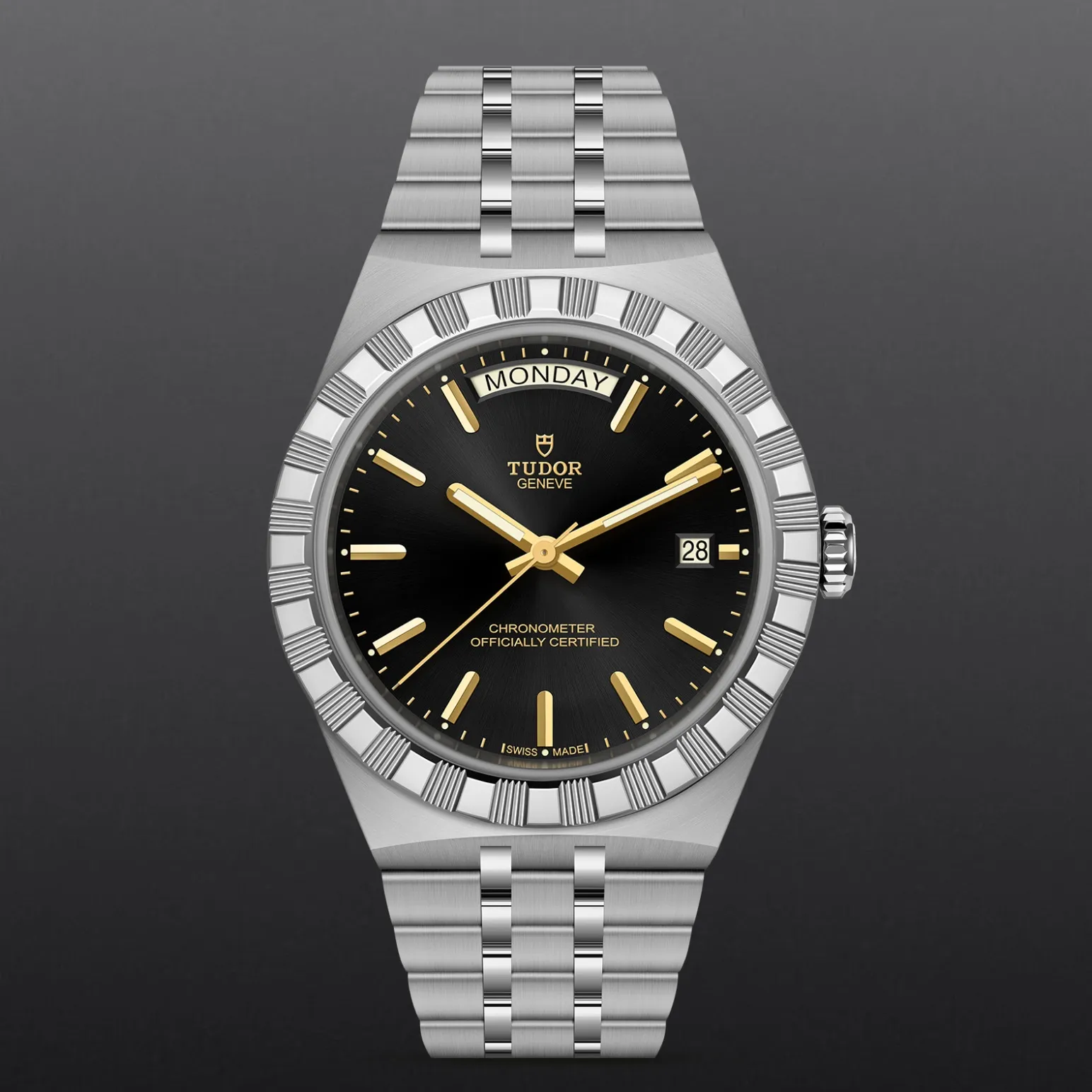 Il nome Royal fu usato per la prima volta da TUDOR negli anni ’50 per sottolineare la qualità superiore dei suoi orologi. La linea TUDOR Royal rientra nella tradizione del Marchio di proporre segnatempo dallo stile sportivo ed elegante, con movimenti automatici e bracciali integrati, ad un prezzo accessibile ma che non scendano a compromessi sulla qualità. Declinati in acciaio o in acciaio e oro e in tre misure con un’ampia varietà di quadranti, gli orologi di questa gamma sono tutti caratterizzati da un’estetica rinnovata, decisa e raffinata.