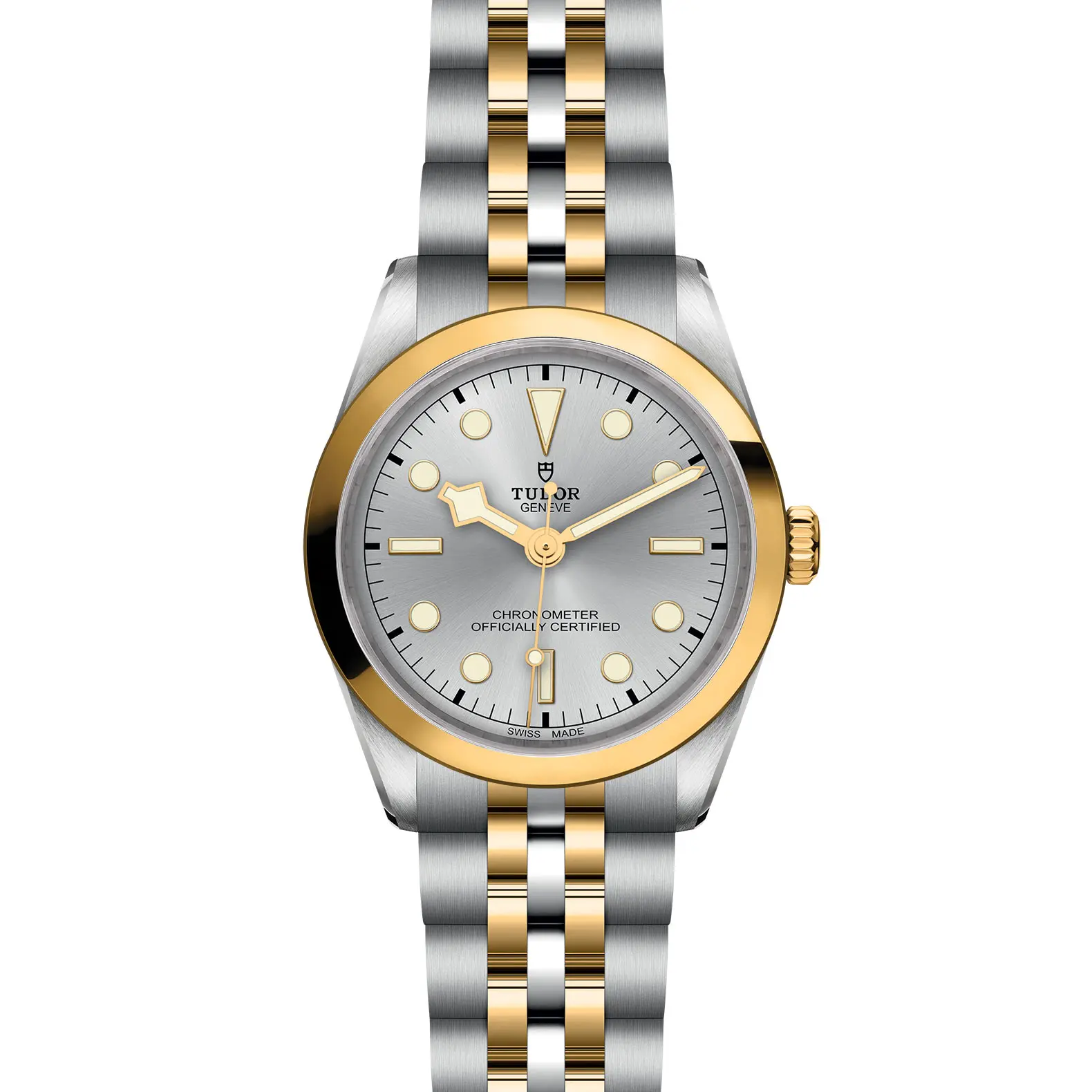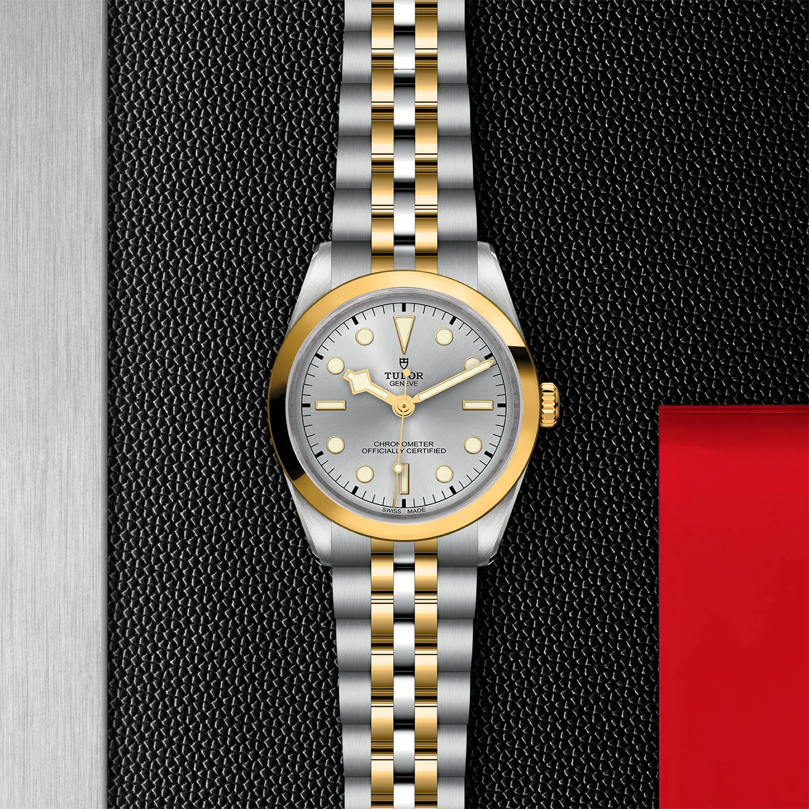 Prime maglie centrali in acciaio o in oro giallo massiccio. Le altre maglie centrali sono costituite da un’anima in acciaio rivestita da 0,2 mm di oro giallo. Chiusura pieghevole TUDOR “T‑fit” con fermaglio di sicurezza. Il logo sul fermaglio è realizzato in oro giallo massiccio.