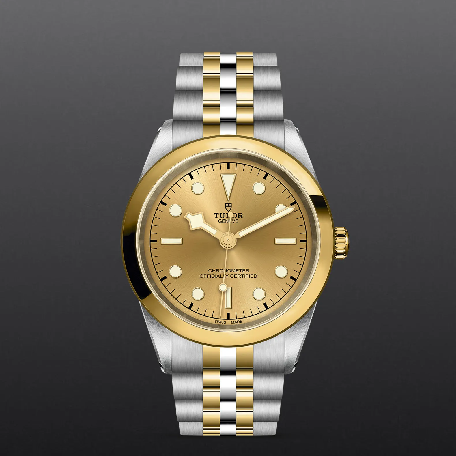 Prime maglie centrali in acciaio o in oro giallo massiccio. Le altre maglie centrali sono costituite da un’anima in acciaio rivestita da 0,2 mm di oro giallo. Chiusura pieghevole TUDOR “T‑fit” con fermaglio di sicurezza. Il logo sul fermaglio è realizzato in oro giallo massiccio.